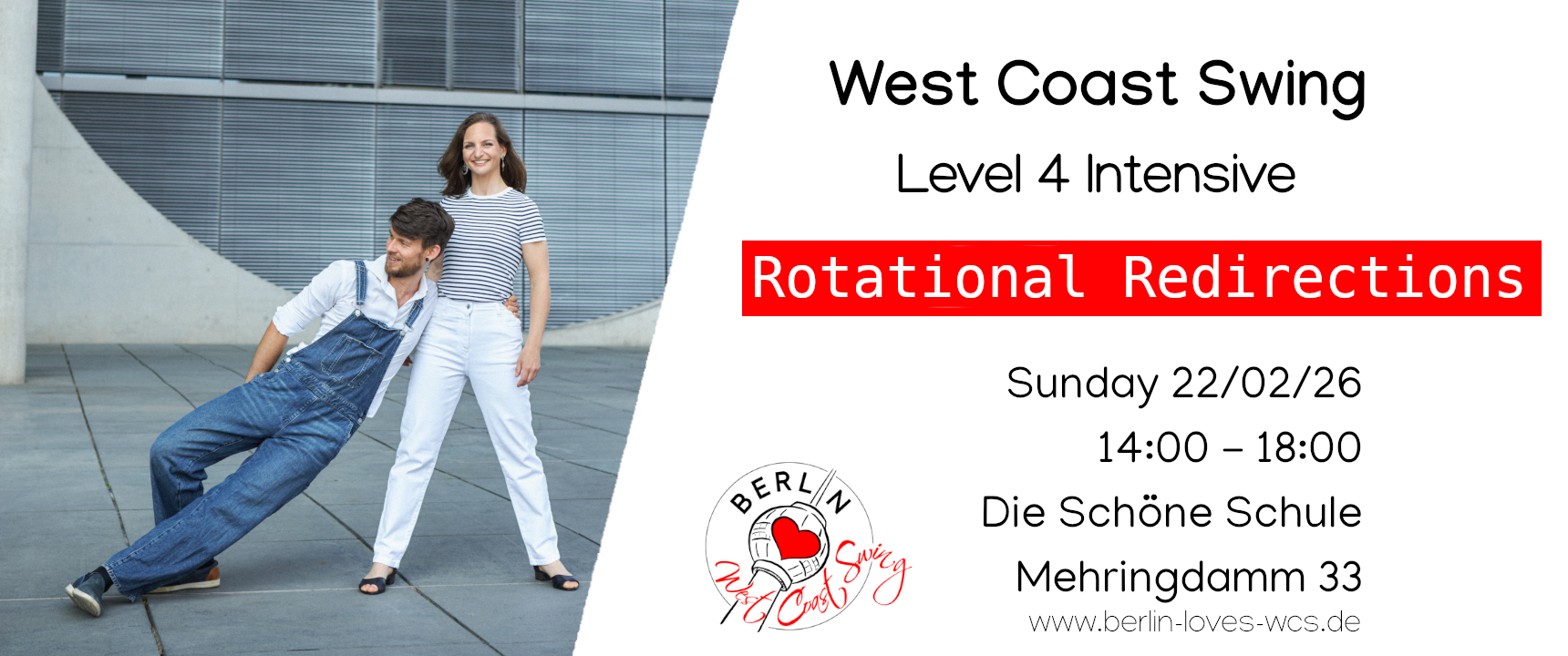 Am Sonnstag, den 22.02.26 geben Clem und Evi ein West Coast Swing Level 4+ Intensive!